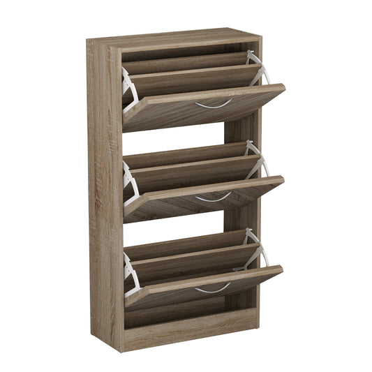 Free Standing Tipping Bucket Shoe Cabinet with Compartments, 3 Drawer Shoe Cupboard for Hallway Entryway