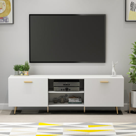 Entertainment Center with Storage Shelves and Cable-management, TV Stand TV Cabinet with Gold Metal Legs for Living Room White